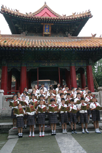 学生在孔庙杏坛诵读校本课程