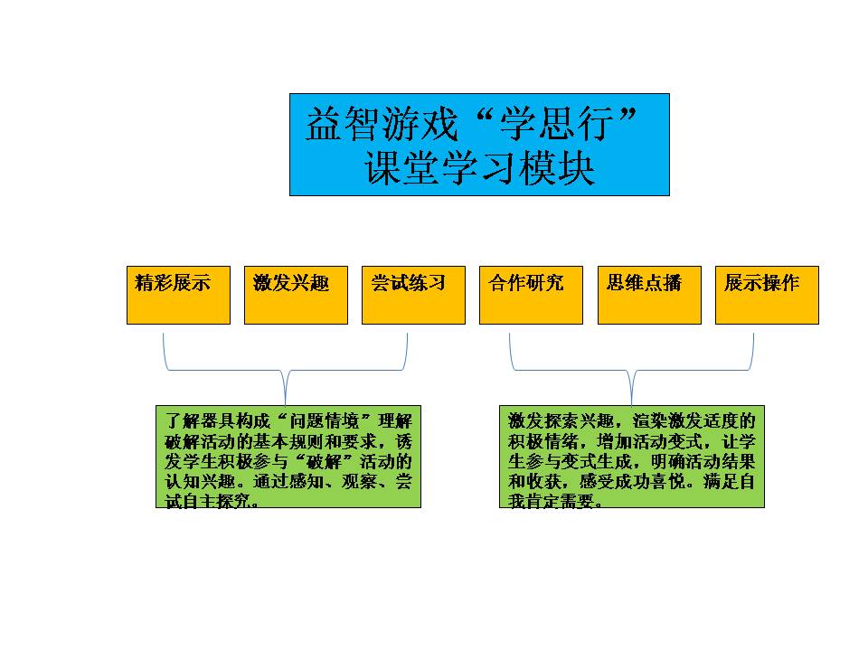 新时代的少年君子核心素养是“仁、智、勇、艺”,“仁者不忧、智者不惑、勇者不惧”、“艺者不俗”。让学生成为智慧君子是我们探索的重点方向之一。中国教科院十三五重点课题“益智课堂与思考力培养的实践研究”为我们的探索提供有力的理论指导和实践支撑。“益智课堂”挖掘我国传统益智文化遗产,借鉴国外智力开发经验,结合学生思维发展特点,以系统化的思维训练器具为载体,以“探究-发现”为训练教学主导模式,以促进学生思维能力发展为主要目标,多途径促进学生思维能力发展。
